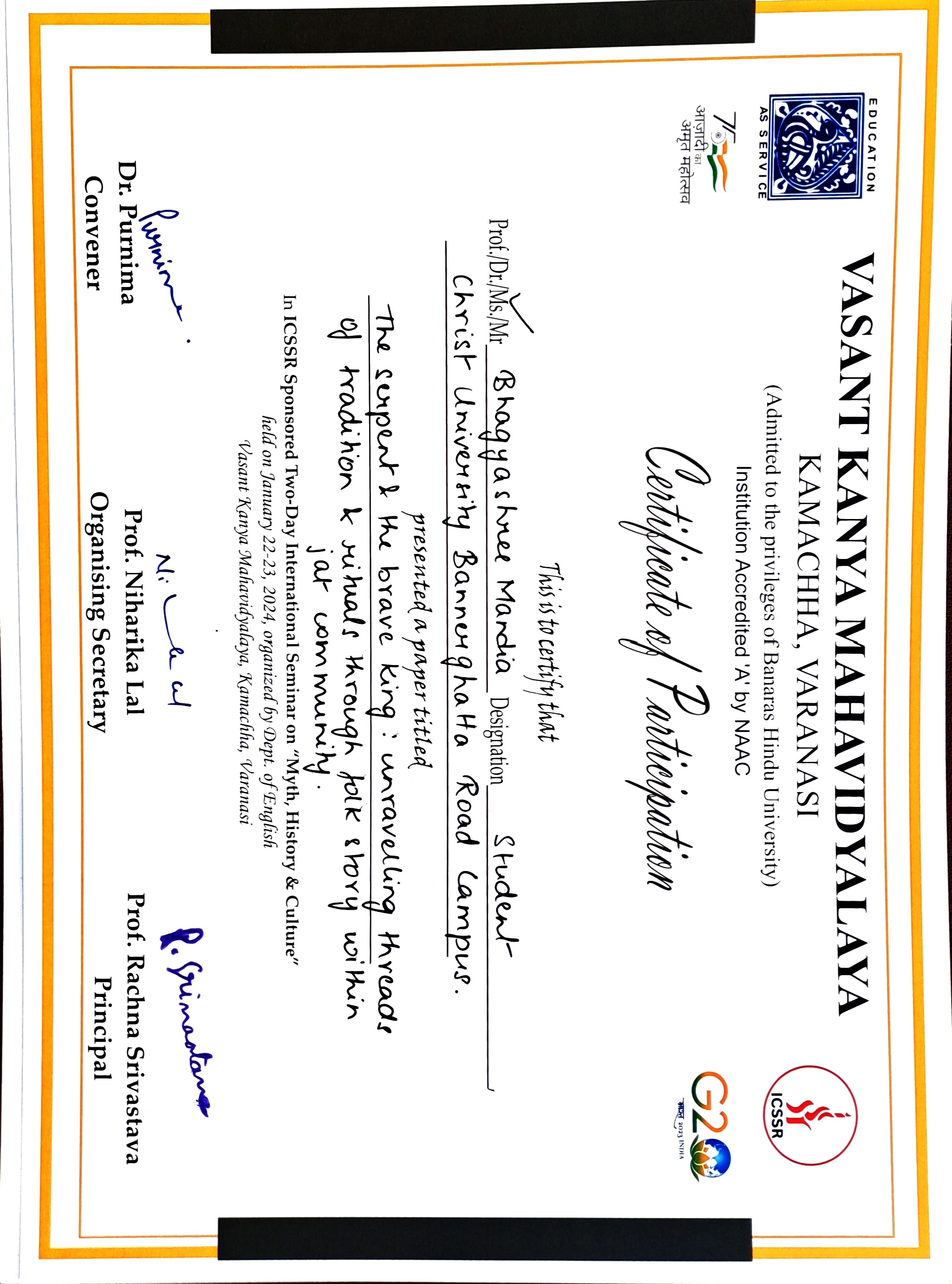 M.A. (Capstone) Project - Paper presentation